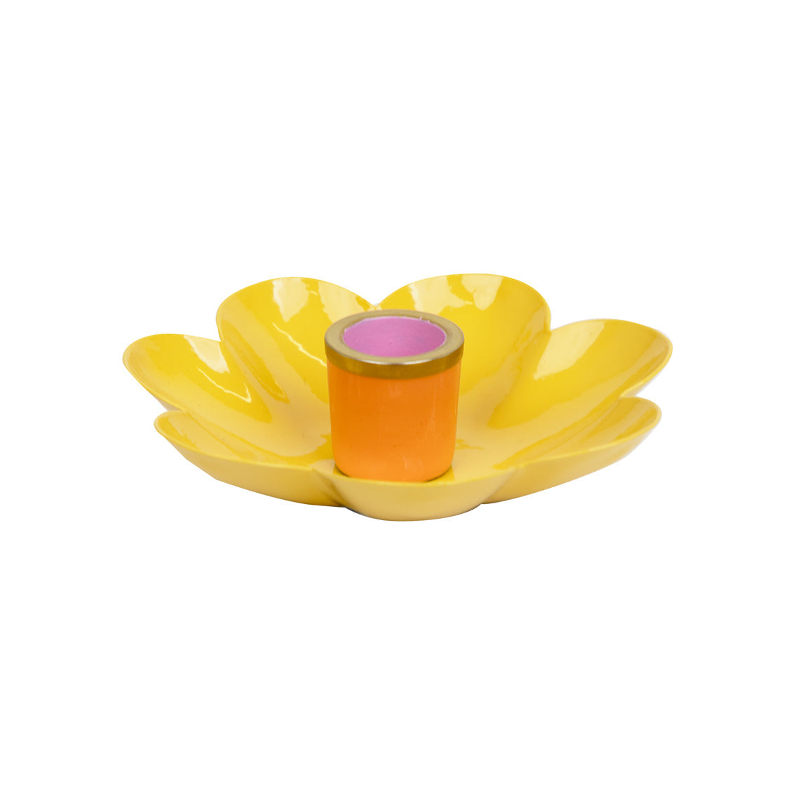 Cheerful and colorful, these enamel flower-shaped candle holders add a bright accent to any home or table display. Crafted from powder-coated metal with a high-gloss enamel finish, each holder has a rich, premium look that enhances the vibrancy of its color. Available in pink, blue and yellow, the set is perfect for spring and Easter but designed to be enjoyed all year round. Each piece fits Talking Tables dinner candles and is suitable for indoor use.