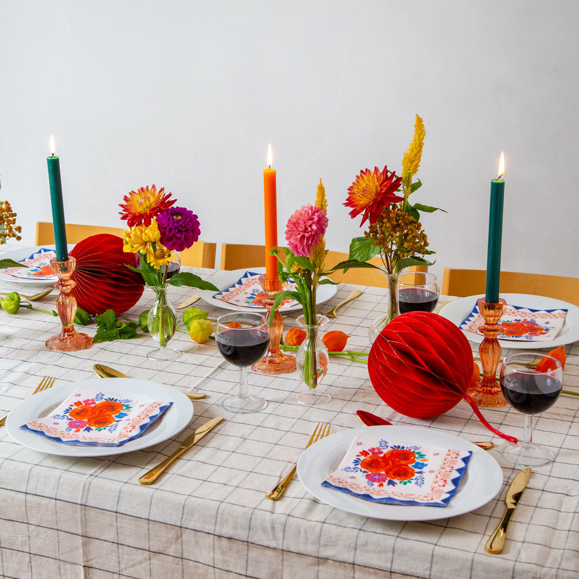 Hosting a summer gathering? These floral boho napkins by Talking Tables are perfect. With their hand-painted inspired design and bold colors, they're a must-have for your table. Each pack contains 20 paper napkins. Size: 13" x 13" unfolded.