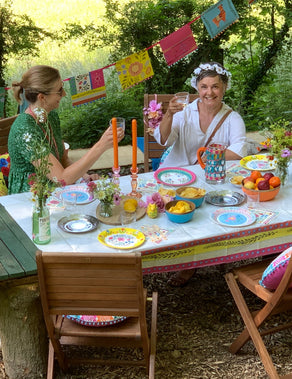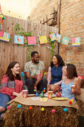 Decorate your summer party with this bunting with llama and floral print design. This vibrant bohemian bunting with pom pom trim is ideal for decorating your home or garden.
