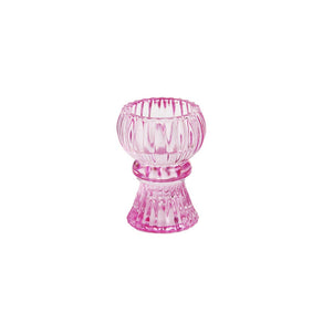 Share the love in your store with this little pink glass candle holder. A great way to add some style and elegance to any table, this pretty pink candle holder makes a great addition to your core range of home décor and table decorations. Its unique design means that this candle holder can be used for both candlesticks and tealights - simply flip over to reveal the alternative tealight candle holder. Perfect to use for a romantic candle lit meal on Valentine's Day when paired with our tall wax candles or twisted candles. Alternatively, use all year round for a dinner party with friends or lined up along your kitchen table.