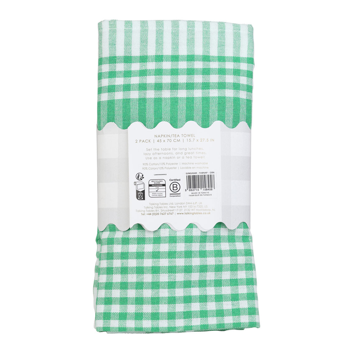 How to merchandise Bon Appetit Green & White Fabric Gingham Napkins/Tea Towels – 2 Pack: