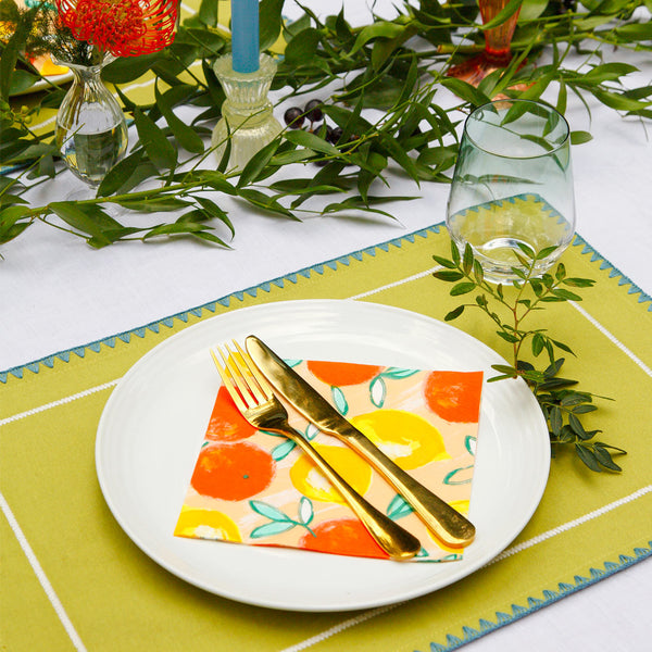 How to merchandise this 'Citrus Fruit Paper Table Cover’: