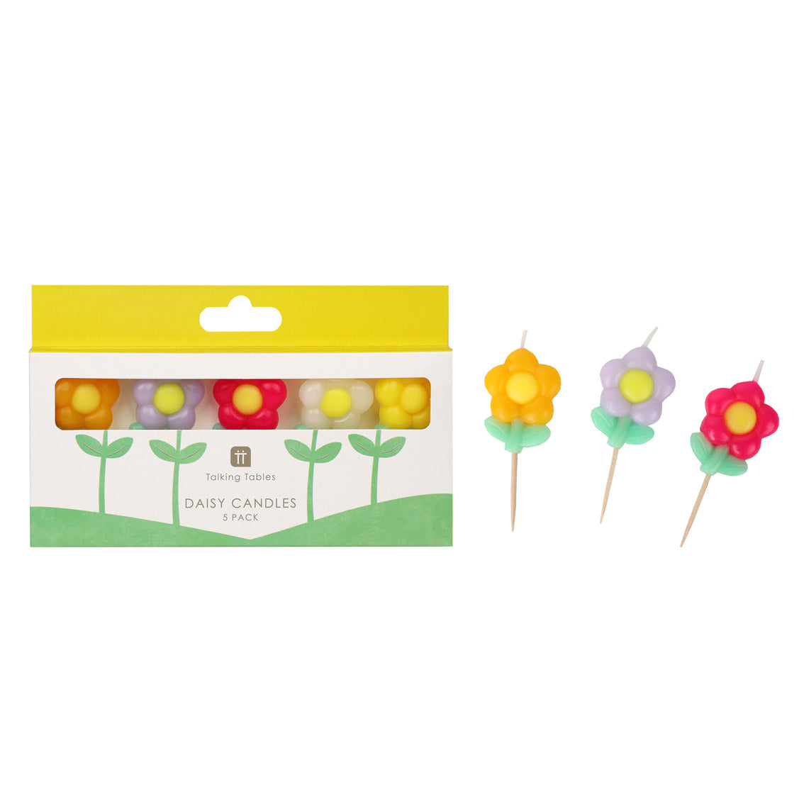 Suitable for all ages, our uplifting colored daisy shaped candles come in a pack of five and will add a pop of color to birthday cakes, cupcakes, fruit platters and brownies.