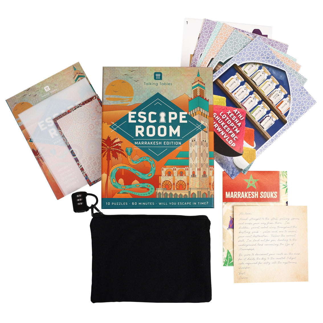 Following our bestselling Kyoto Escape Room game, this is our second city themed escape room title. This time the action takes place in the back streets of Marrakesh, in a game that will challenge and delight your customers. The concept sees the discovery of an ancient and powerful time-controlling relic, the Eye of Marrakesh. Unfortunately, the sinister Sand Serpents mob want to misuse its potent power. Players must navigate through Marrakesh’s markets, and decode 10 intricate puzzles in tiles, maps, rugs and pottery to thwart the evil Sand Serpents. This game includes a video introduction and innovative games including heat reactive technology.