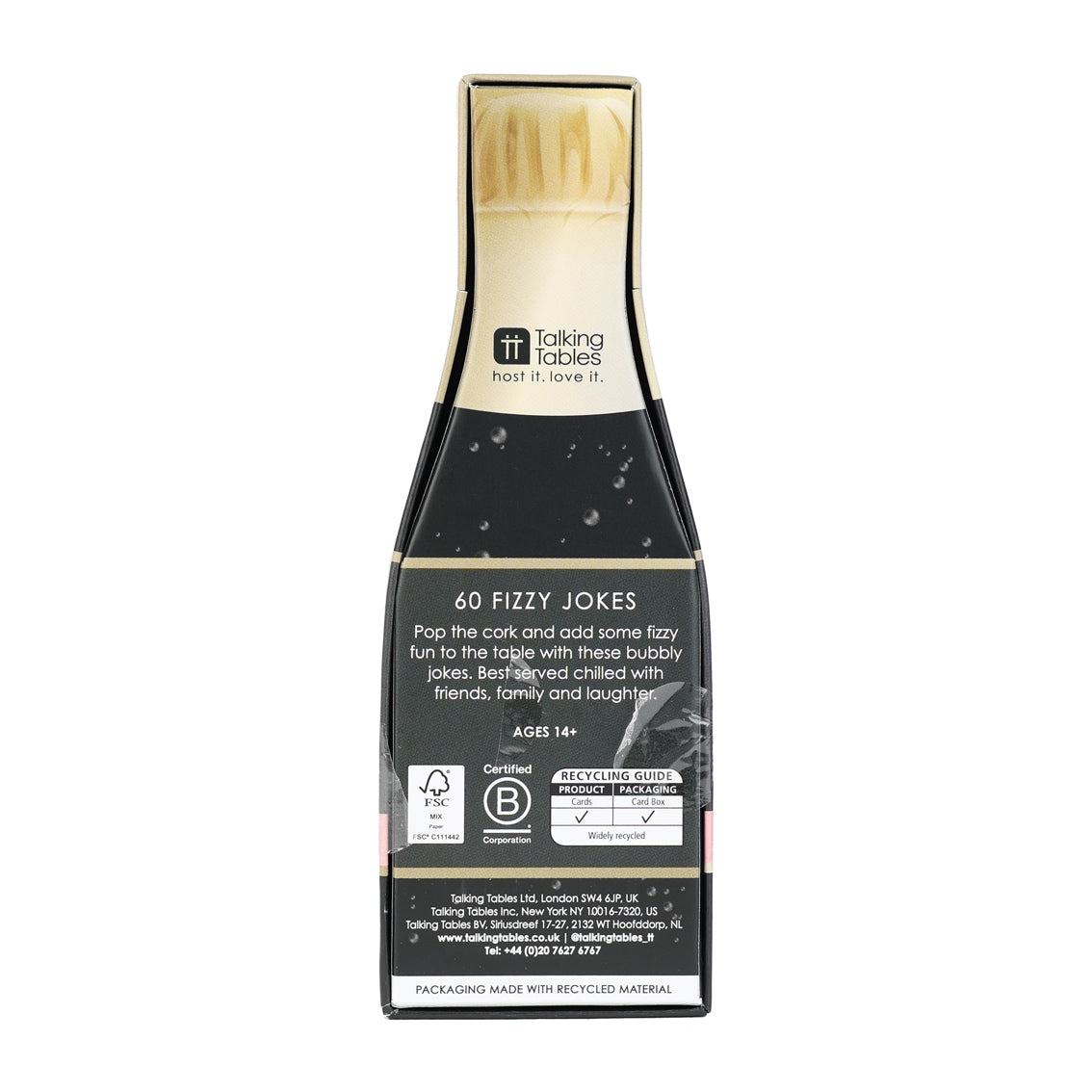 Get the party started with Fizzy Jokes—a sparkling, humor-filled addition to any gifting range. Shaped like a bubbly bottle of fizz, this compact novelty pack includes 60 drink-themed jokes and trivia, perfect for dinner parties, wine nights, or bachelorette celebrations. A fun, eye-catching item for checkout zones or gift displays.