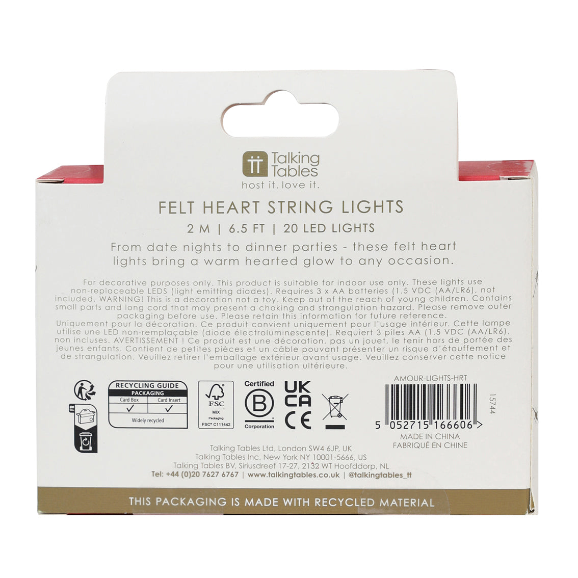 Pair with matching heart garlands, napkins and gift bags to create an inviting Valentine’s or wedding display. Display with other string and fairy lights for a more everyday option.