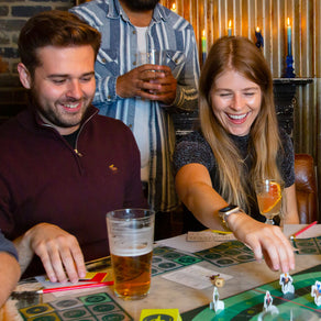 Once your players have gathered, kick things off by scanning the QR code with a smart phone, tablet or watch to view an intro video that explains the game. As competitive rivalries begin to brew, lay out the gameboard, shuffle the deck and then deal out the necessary cards to each player.