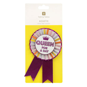 About this Luxe Multi Colored "Queen For A Day" Birthday Rosette Badge: