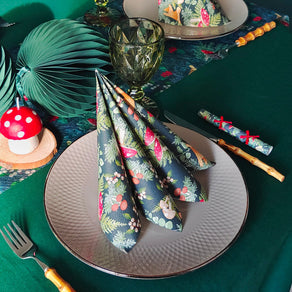While the rest of the world has been sleeping, the little elves have been working away to create these whimsical woodland napkins. Featuring forest foliage, a variety of mushrooms and bright berries, these woodland paper napkins will bring alive the joys of nature in your customers’ homes. Loved by both adults and children alike, this sophisticated set of dark green napkins is ideal for Christmas get-togethers, Thanksgiving dinners, winter weddings or kids’ parties.