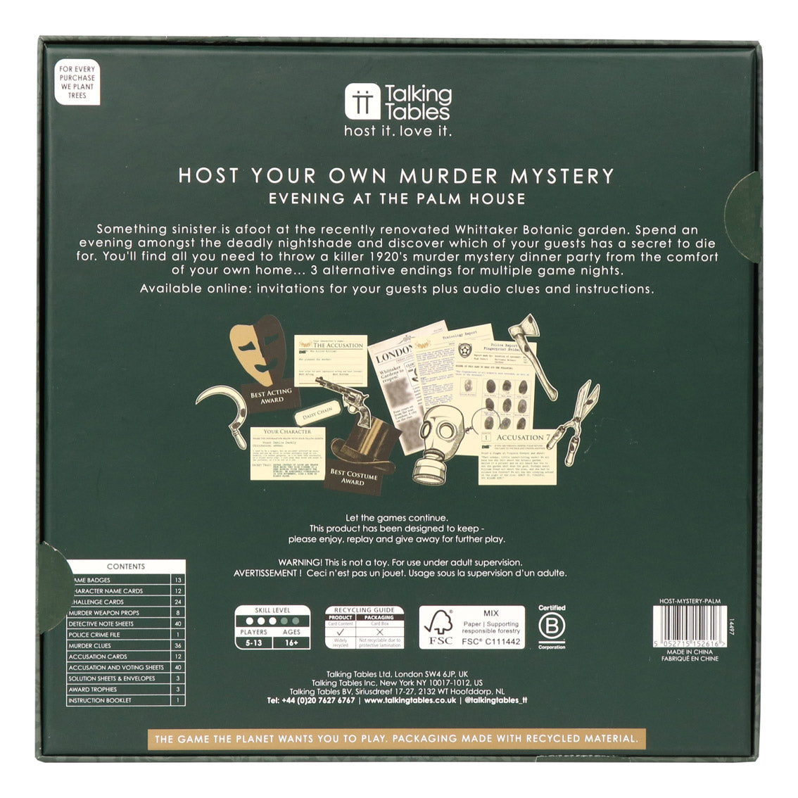 Your customers will enjoy spending a 1920s evening among the deadly nightshade in the latest addition to our best selling Host Your Own Murder Mystery series, the home of whodunnits. There is something sinister going on at the recently renovated Whittaker Botanic garden and someone has a secret worth dying for. Murder Mystery at the Palm House really is criminally good fun, and with three alternative endings customers can sharpen their sleuthing skills with game replay.