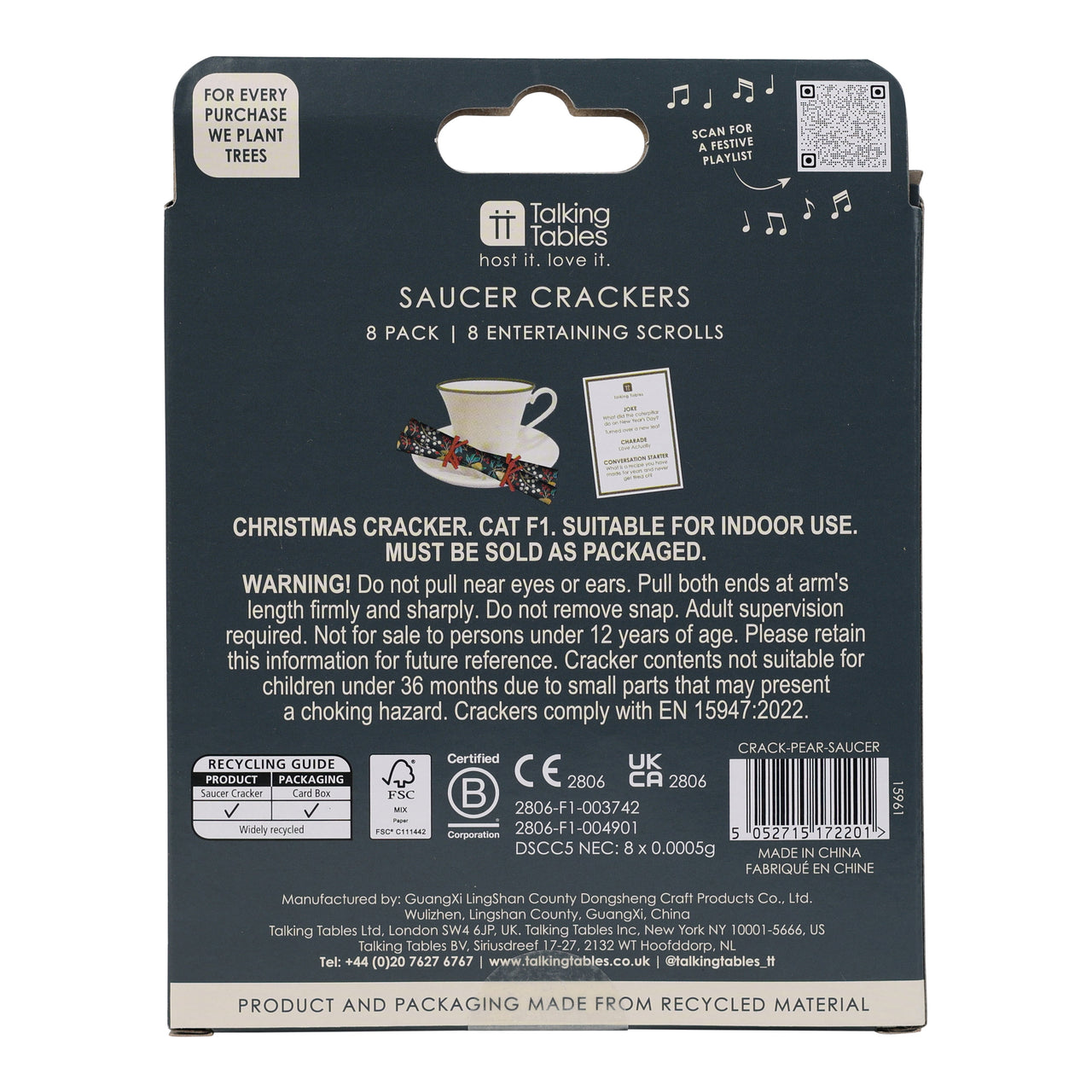 About Partridge & Pear Christmas Saucer Crackers – 8 Pack: