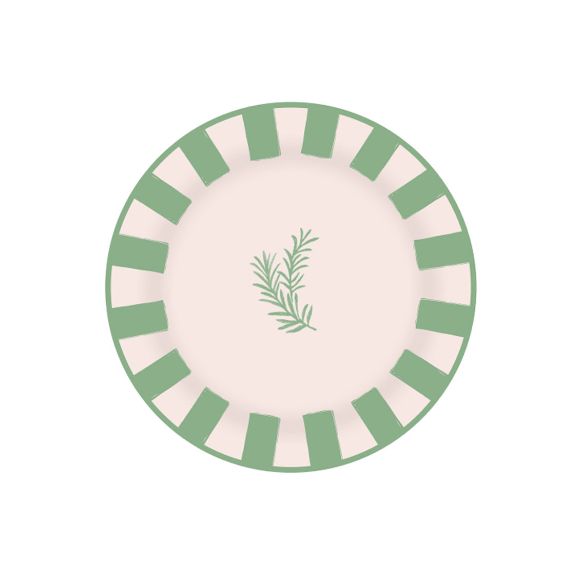 From the Bon Jardin collection, the Rosemary Enamel Plate celebrates the connection between kitchen and garden. Featuring hand-painted green stripes and a central rosemary motif, it captures the simplicity and freshness of herb-inspired dining. Each plate is hand-dipped multiple times in enamel and fired at high temperature for a smooth, chip-resistant finish that’s made to last. Perfect for everyday dining, picnics or outdoor entertaining.