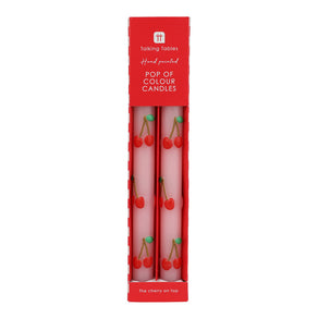 Tap into the cherry trend with these hand-painted Cherry Dinner Candles. Each candle is made from paraffin wax with a cotton wick and features a raised cherry design, hand painted by skilled artists. The design wraps around the pale pink base, with bright red cherries and pops of green that stand out from every angle. Fun yet on-trend, they add a bold pop of colour to any table or interior and come in a printed box that’s ideal for gifting.