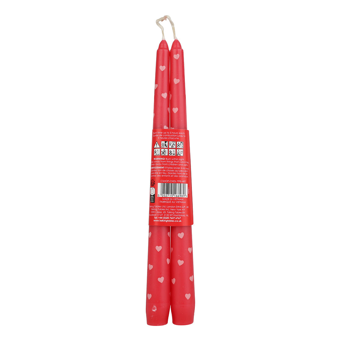 Bring colour and charm to your candle offer with these Heart Taper Dinner Candles. Made from paraffin wax with a cotton wick, each candle features a cherry pink base printed with pale pink hearts – a simple but high impact combination that works across multiple occasions. With a burn time of up to 5 hours, they’re ideal as a giftable or add-on item within home decor ranges.
