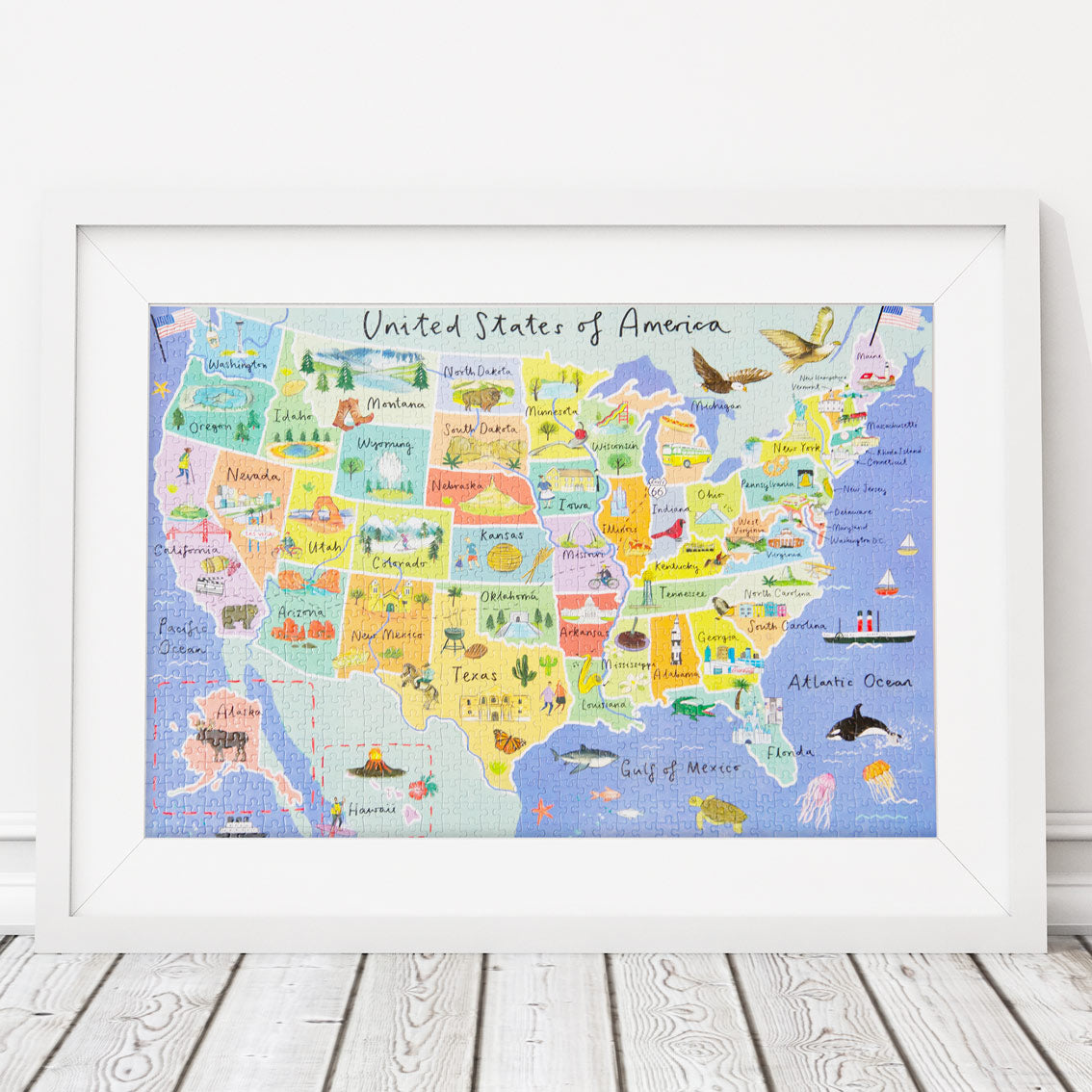 Test your geography knowledge as you piece together the map. This beautifully illustrated 1000 piece map of the USA puzzle features landmarks from across America. Perfect for relaxing on a rainy day, in lockdown or as a birthday present or Christmas gift for any geography fan or puzzle lover! It is also a great, fun way to try and learn all 50 states of America. Puzzles encourage wellness and are sure to help you relax. This unique design can become a permanent decoration in your home by putting in a frame and hanging them on your wall as art.