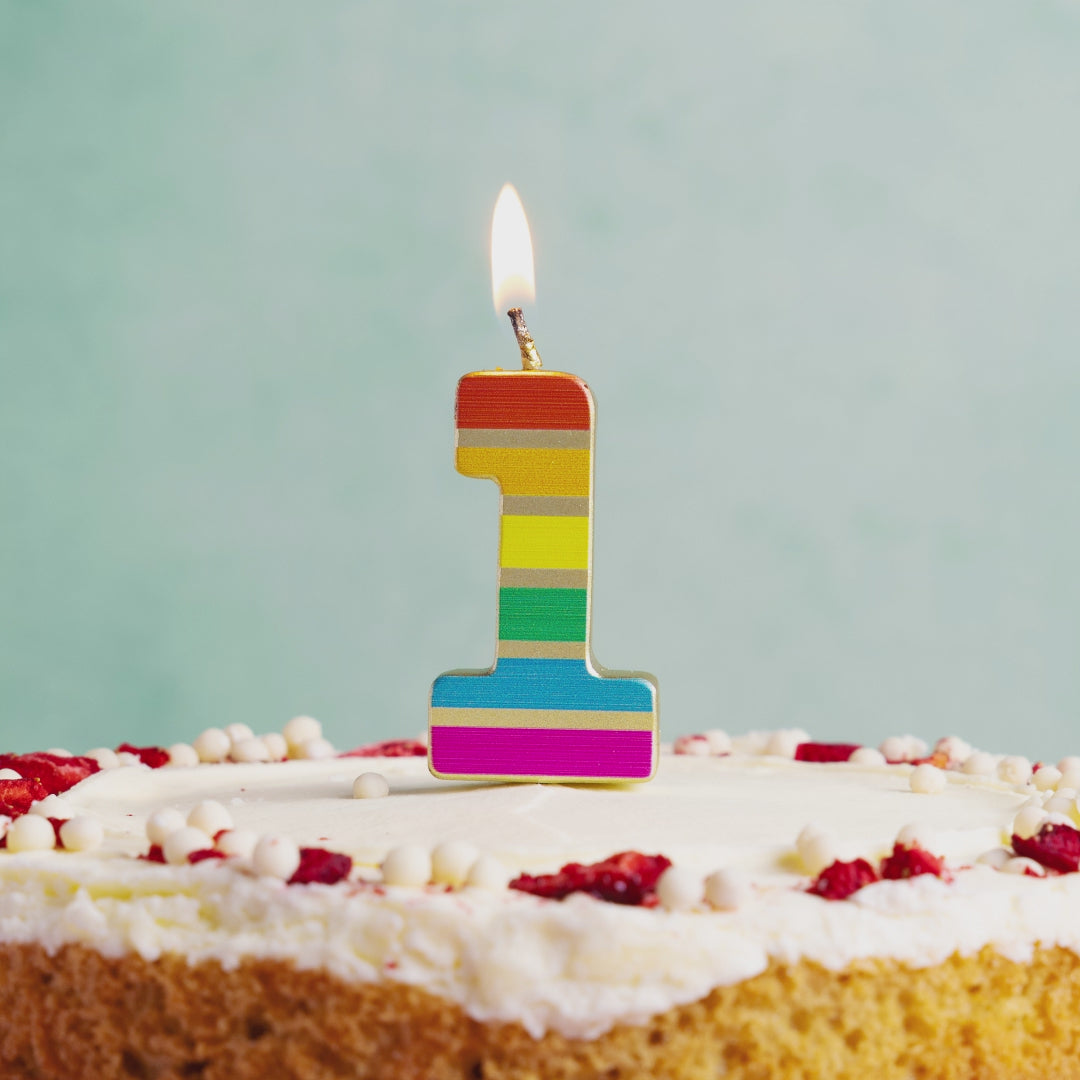 Add a bright touch to your customers birthday cakes with our new 3 rainbow number candle. Designed to bring colour and excitement to any birthday celebration and a must-have for bakeries, party shops and gift shops. The multicolored numbers and striped design will suit birthday cakes of all ages and genders.