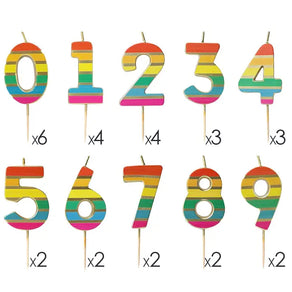 Add a bright touch to your customers' birthday cakes with our new 0-9 rainbow number candles. Designed to bring colour and excitement to any birthday celebration, and a must-have for bakeries, party shops and gift shops. The multicolored numbers and striped design will suit birthday cakes of all ages and genders.