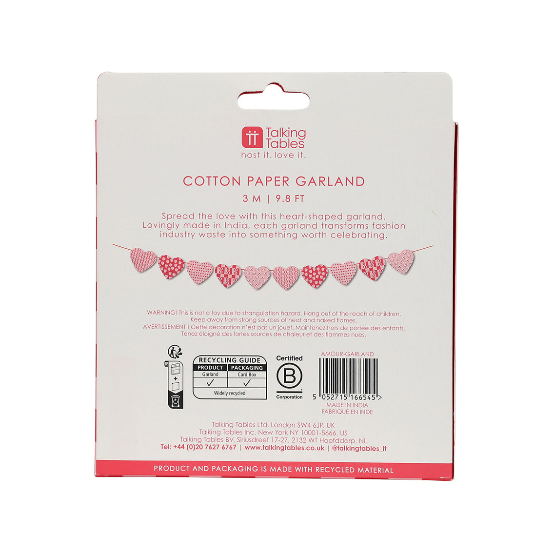 Inspired by the Bon Amour collection’s celebration of love and heart motifs, this handcrafted garland from Talking Tables adds love or a romantic touch to any setting. Made in India using recycled cotton paper from the fashion industry, each garland transforms textile waste into something beautiful. With pink and red patterned hearts, it’s ideal for weddings, Valentine’s displays or as a thoughtful home decoration that spreads a little love all year round.