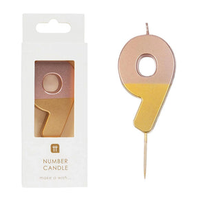Perfect for customers celebrating a birthday or anniversary, this number 9 candle will light up the room of party guests. Ideal for adding the finishing touches to a birthday cake, this candle has a gorgeous two-tone rose gold dipped design perfect for birthdays from 9 through to 90. We have number candles from 0-9 available so you can provide cake candles to your customers whatever their desired age.