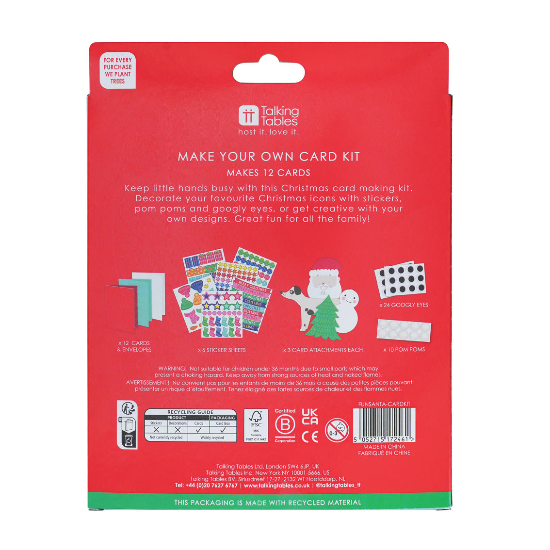 A hands-on festive activity designed for family time and seasonal crafting. This card-making kit includes everything needed to create 12 Christmas cards, featuring bold colours and character-led designs that tie into the Fun Guy Santa range. With a mix of stickers, pom poms and googly eyes, it offers a simple, engaging way to create personalised cards while keeping children entertained in the lead-up to Christmas.