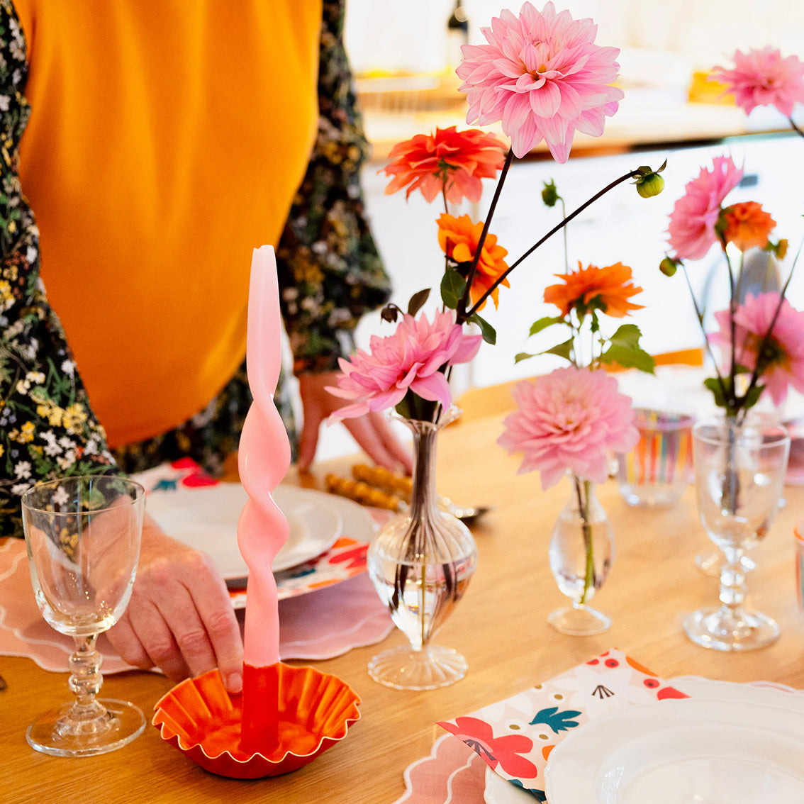 Once dinner is over: The candle holder will bring a pop of color to a mantlepiece or side table all year round, when it’s not being used to create a cozy ambience for dinner.