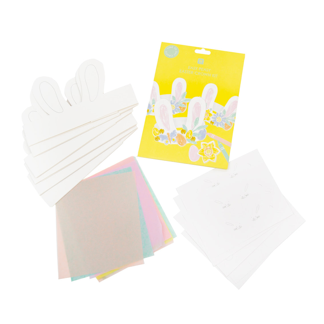 Look no further for Easter craft ideas. The whole family can get crafty with our DIY Easter crown kit. Design the best headband and be crowned top bunny. The kit includes thick craft card to color-in and tissue paper to cut-out and stick on to make six Easter headbands.