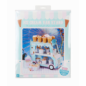 A super cute Ice Cream Van Stand with 3 tiers. Add ice creams and treats, sweets and cakes or fill the paper cones with sweets. Card van stand pack includes 12 x paper ice cream cones, 'A' board sign and stickers to personalise. Treat tubs not included. Size: H 34cm x W 37cm x D 20cm