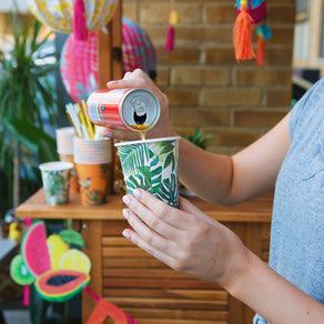 These wonderfully designed tropical prints paper cups are a great way to serve your drinks this summer! Each pack contains 8 paper cups each with beautiful green leaves pattern. Volume: 9oz (250ml). Mix and match with other bright and colourful party accessories from our fiesta ranges!
