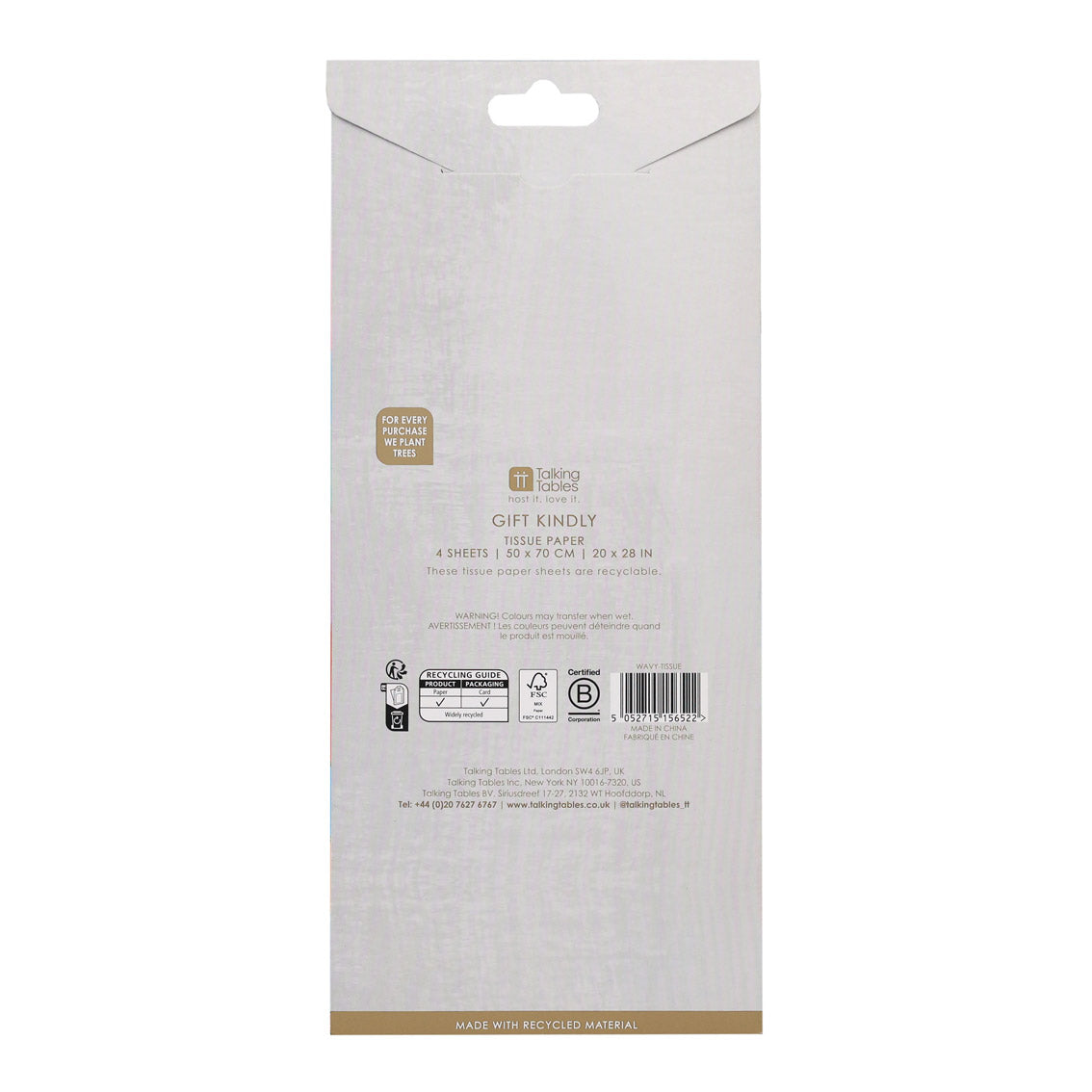 This tissue paper will make waves in the gifting and partyware department. Each pack contains four sheets of wonderfully smooth, sustainably sourced paper that’s been illustrated with a spectacular wavy print in springtime shades. Recyclable and 100% plastic free.