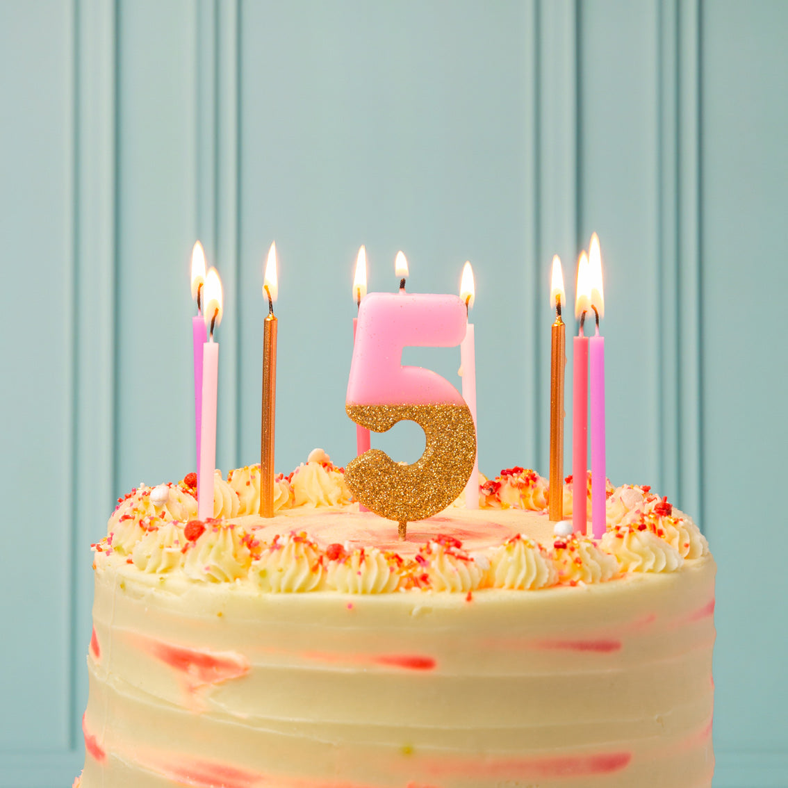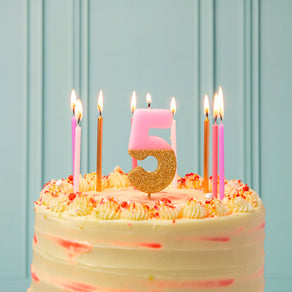 Celebrate your special big day with our number 5 glitter dipped candle. It's perfect for making that magical birthday wish!