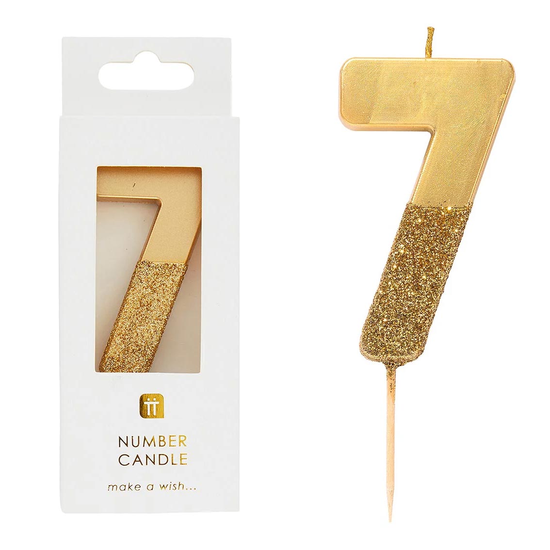 Celebrate your special big day with this number 7 gold glitter dipped candle. Mix and match with other numbers, also available in blue and pink. Perfect for popping on a special birthday cake!