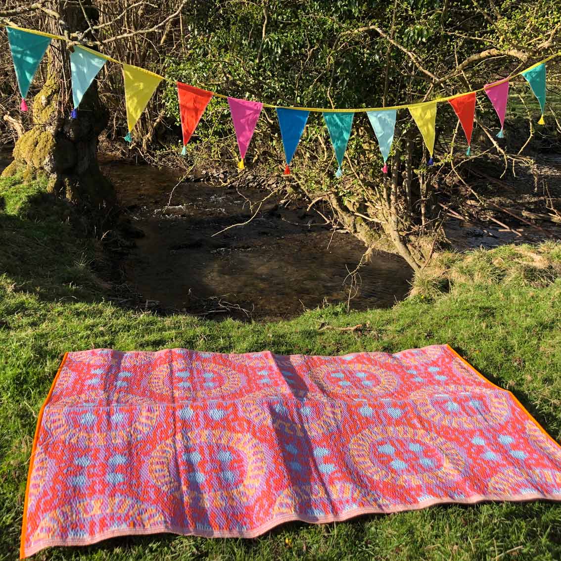 Multicolored Fabric Bunting with Tassels by Talking Tables. This reusable bunting is handmade from sustainably sourced 100% cotton and washable. Suitable for indoor and outdoor use and perfect for adding a pop of colour to any birthday party, kids party, garden party or BBQ! It also makes for lovely home décor in a child’s bedroom. Each colourful pennant is double-sided, simply hang on the wall, in the garden or across the ceiling to create a fun atmosphere your guests will love! Size: 3m (118in) with 12 pennants.