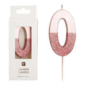 Rose Gold number 0 birthday candle dipped with glitter by Talking Tables. Add some sparkle to your birthday cake with this stylish number 0 birthday candle cake decoration. The perfect cake topper for a milestone birthday celebration or wedding anniversary. Mix and match this number 0 candle with other numbers to get your desired age. Our number birthday candles are also available in silver, gold, blue and pink. Numbers 0 to 9 available. Size - (US) 5in x 2.3in x 0.8in, (UK & EU) 13.8 cm x 5.2cm x 2cm.