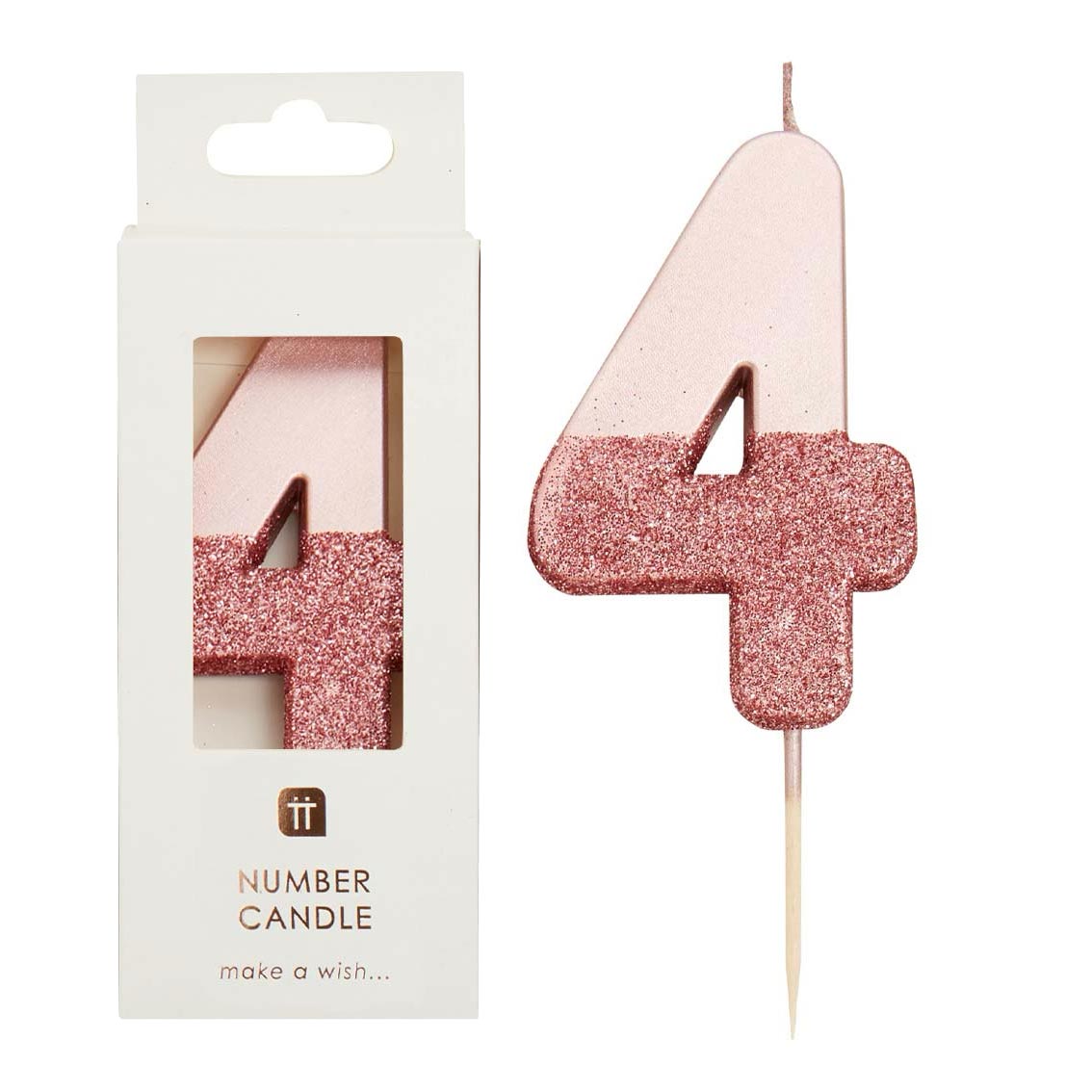 Rose Gold number 4 birthday candle dipped with glitter by Talking Tables. Add some sparkle to your birthday cake with this stylish number 4 birthday candle cake decoration. The perfect cake topper for birthday celebrations or even a wedding anniversary. Mix and match this number 4 candle with other numbers to get your desired age. Our number birthday candles are also available in silver, gold, blue and pink. Numbers 0 to 9 available. Size - (US) 5in x 2.3in x 0.8in, (UK & EU) 13.8 cm x 5.2cm x 2cm.