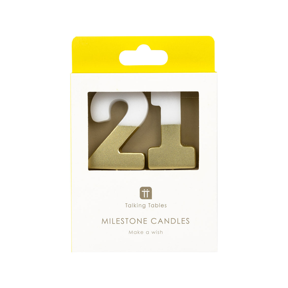 About this White & Gold Milestone Birthday Number Candle - 21: