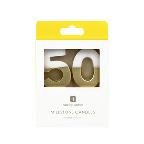 About this White & Gold Milestone Birthday Number Candle - 50: