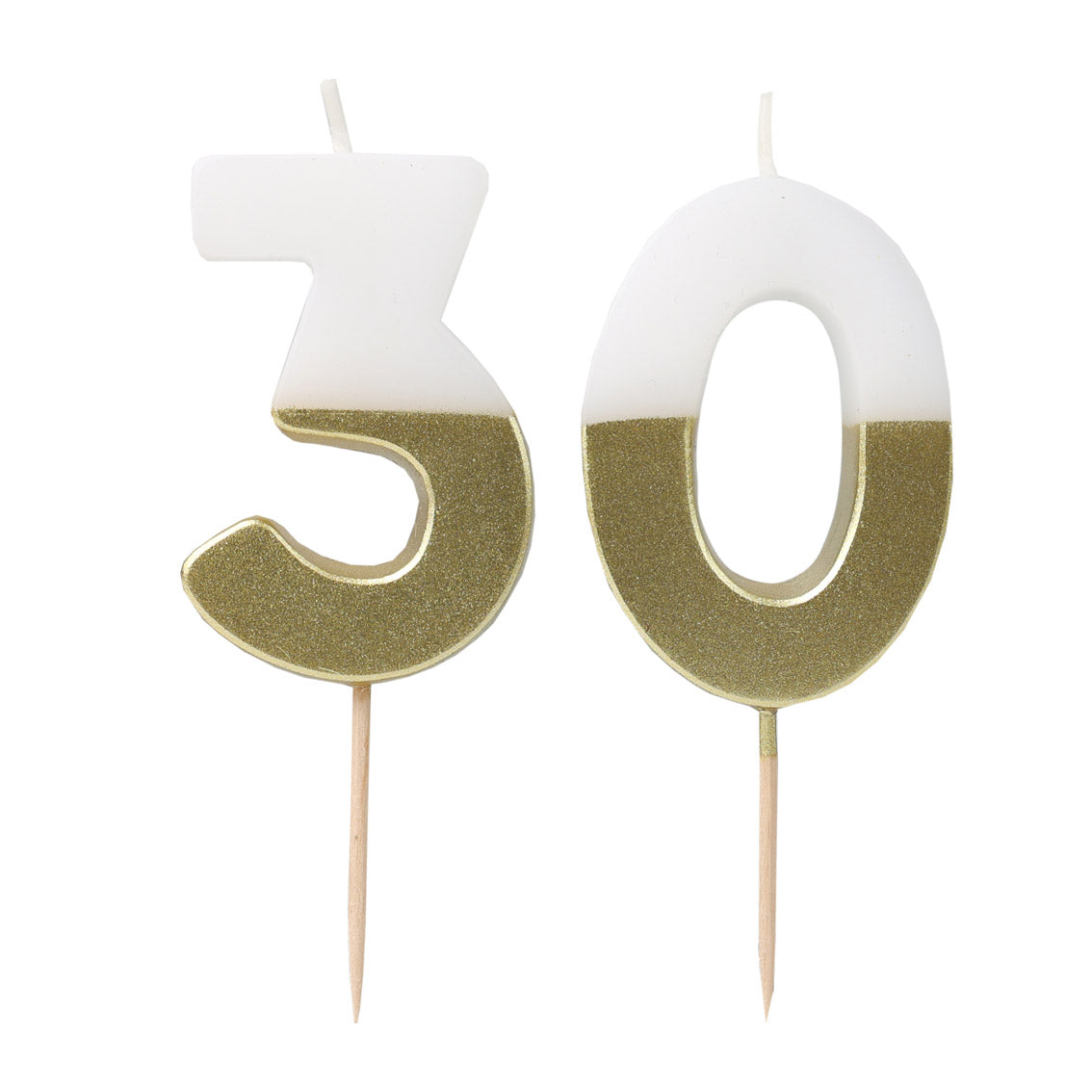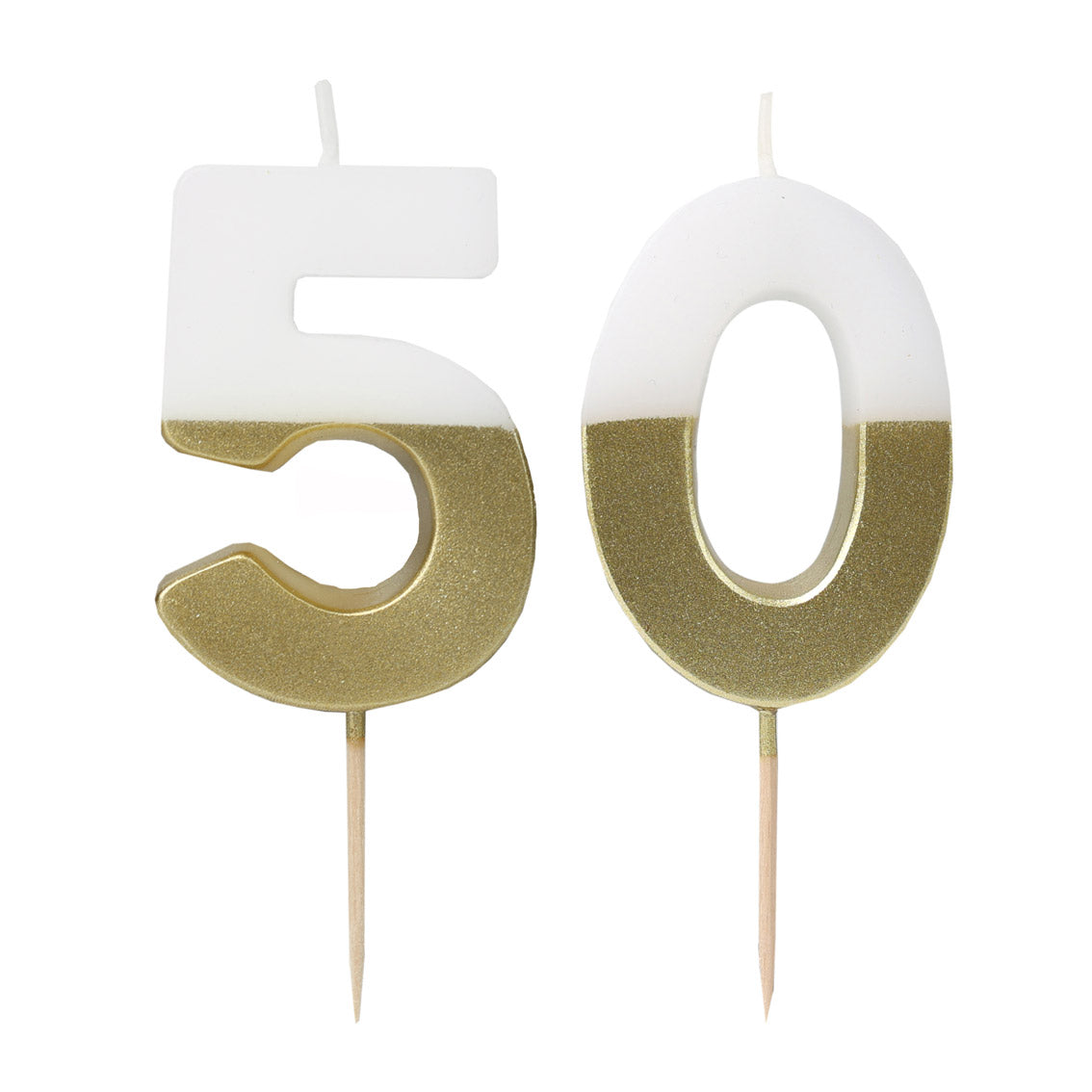 About this White & Gold Milestone Birthday Number Candle Starter Set