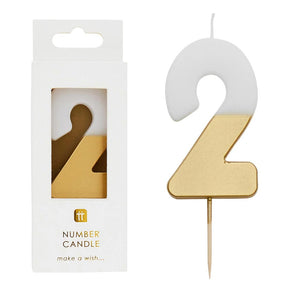 This number 2 white and gold candle is perfect for adding a stylish touch to any birthday cake. Ideal for a Wedding Anniversary or Milestone Birthday whether that be a 2nd, 12th or 21st birthday! We have number candles from 0-9 so you can combine them to create any age or number.